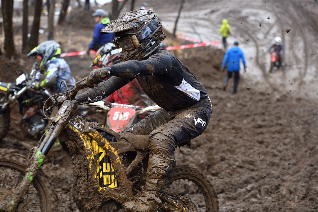 滑る路面もリア荷重なライディングで進む進む!